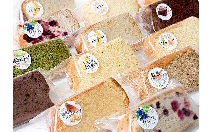 【ふるさと納税】甘さ控えめ カット シフォンケーキ アソート 12個 /たけおしふぉん [UAI001] お菓子 ケーキ 洋菓子 シフォンケーキ