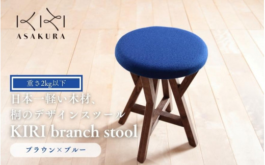 - KIRI branch stool ブラウン×ブルー BR×BL 桐でできた軽量な木製スツール 椅子 インテリア イス いす 家具 加茂市 朝倉家具《サイズ:直径370×440(mm)重量:約1.9kg》