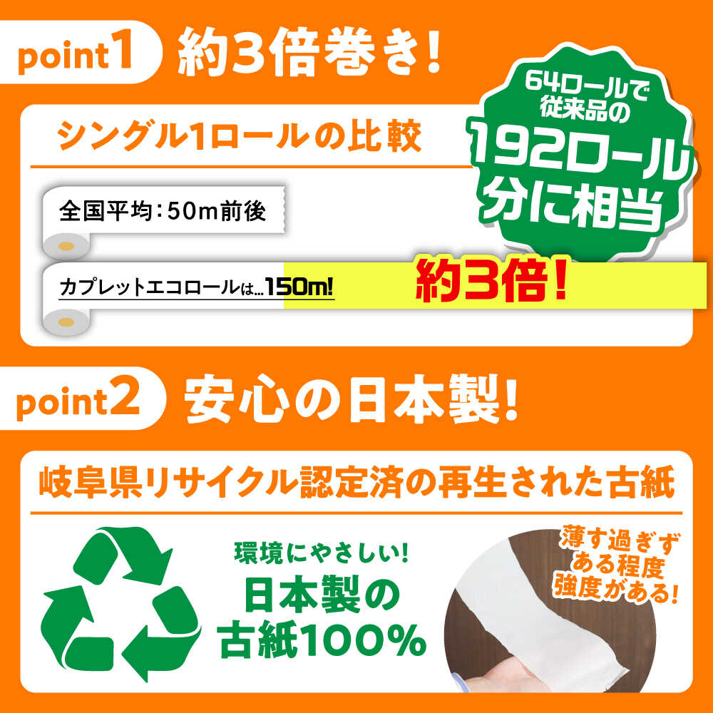 - 【ふるさと納税】【選べる定期便回数】トイレットペーパー 64ロール 3倍巻き 【シングル】 北海道・沖縄県・離島への配送不可 / 日用品 生活用品 エコ トイレットペーパー シングル 3倍巻き 長尺 長持ち 備蓄 防災 消耗品 トイレ 岐阜市 / 河村製紙 [ANBJ021]