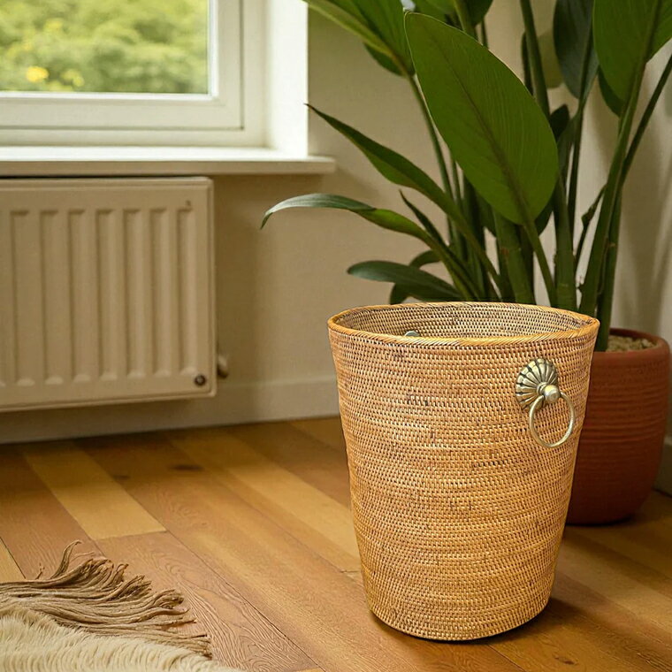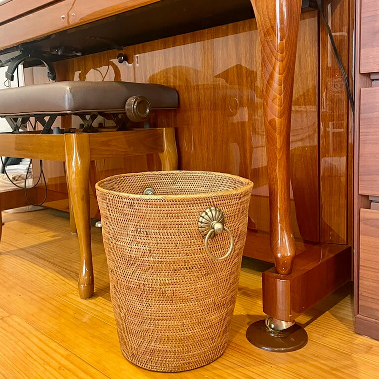 - 【ふるさと納税】アタ ごみ箱 真鍮 取っ手 シンプル 直径28cm 高さ30cm おすすめ 雑貨 バスケット かご 小物入れ 収納 かご 箱 インテリア グッズ オリジナル 手作り バリ島 アジアン プレゼント ギフト ごみ入れ 数量限定 和室 洋室 鉢植え ヨガマット アタブラス ATABRASS