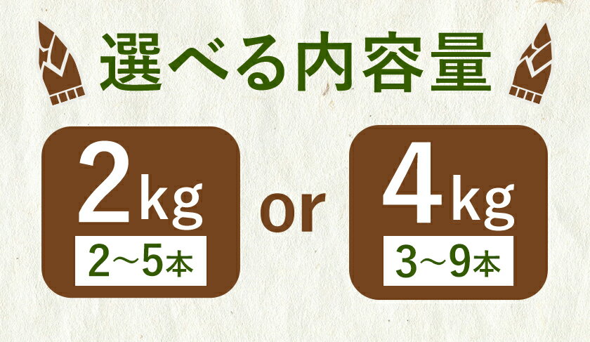- 【ふるさと納税】筍 朝掘りタケノコ 選べる内容量 約2kg(2-5本) 約4kg(3-9本) 株式会社GGYパッケージ《2026年4月上旬-4月下旬頃出荷》熊本県 菊池市 たけのこご飯 土佐煮 五目煮 チンジャオロース 野菜 国産 新鮮 旬 春 送料無料