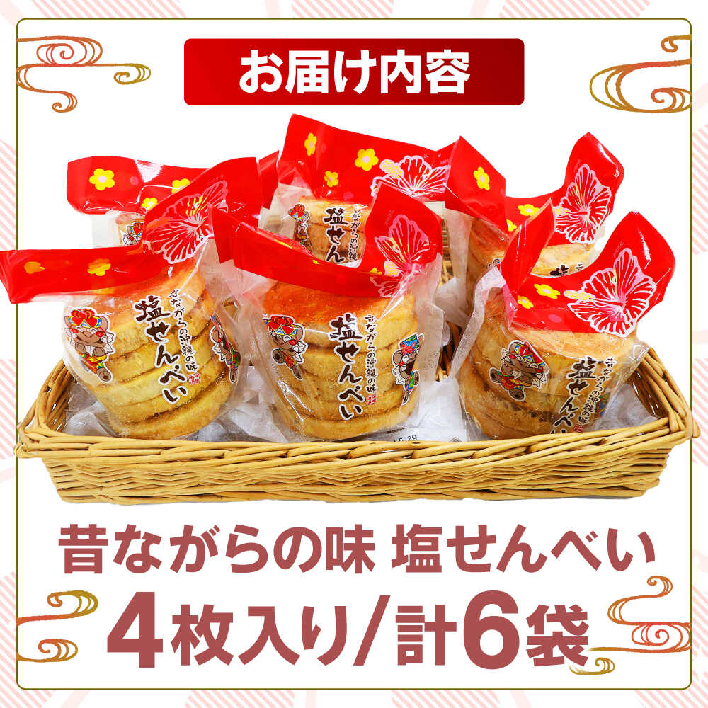 【ふるさと納税】昔ながらの沖縄の味 塩せんべい 4枚入 (6袋セット) お菓子 ご当地 煎餅 せんべい お取り寄せ 沖縄市 8000円 / 沖縄市観光物産センター夢プラザおきなわ [BCBE005]