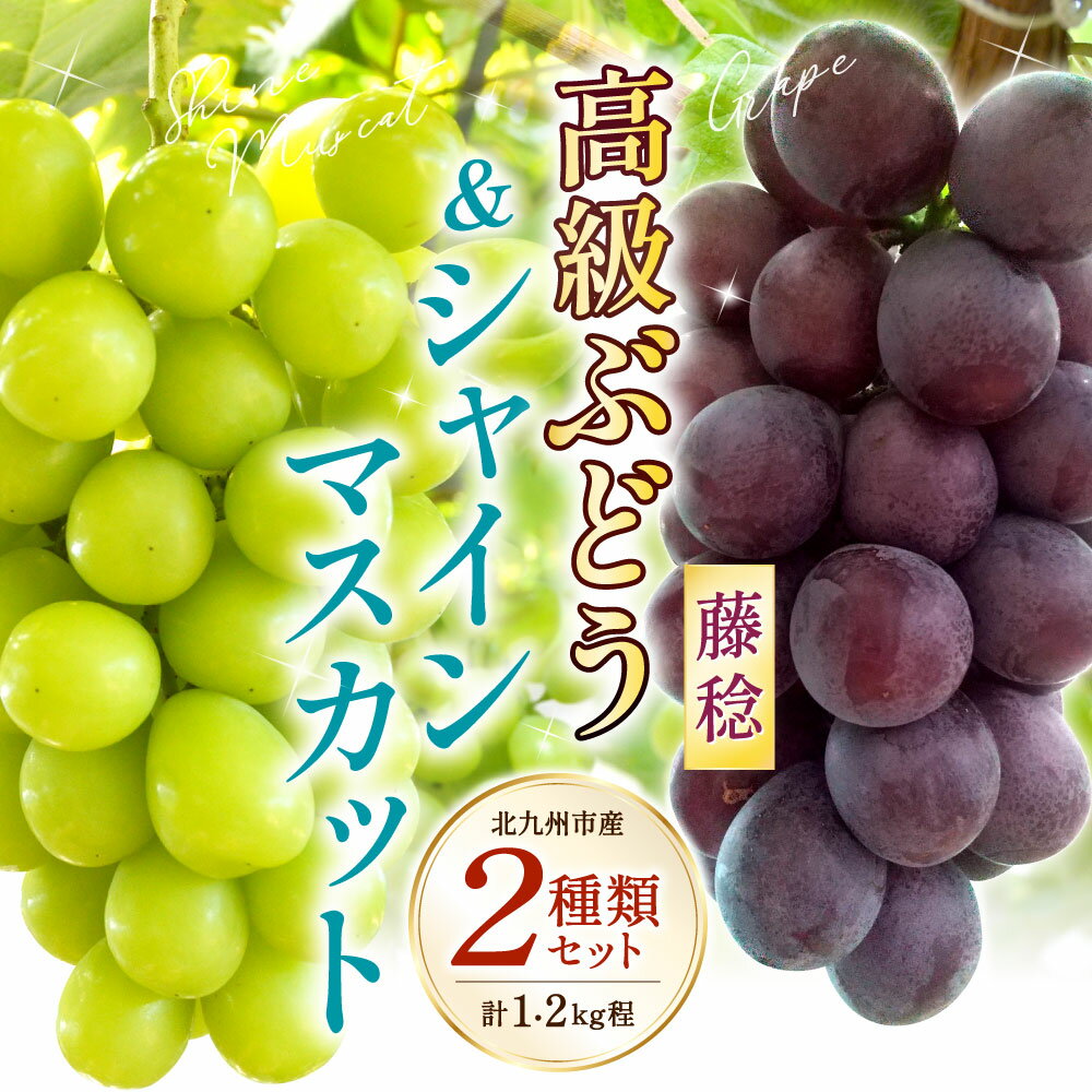 【ふるさと納税】高級ぶどう ( 藤稔 )・シャインマスカット 計2房セット 計1.2kg程《化粧箱入り》 2種類 フルーツ くだもの ブドウ 大粒 良房 種なし ジャンボブドウ 旬 季節 冷蔵 国産 福岡県北九州市 【2026年8月下旬-9月上旬発送予定】 予約