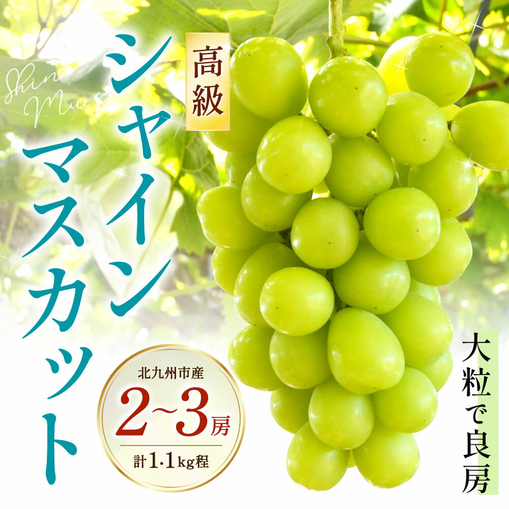- 【ふるさと納税】高級 シャインマスカット 2~3房セット《化粧箱入り》 計1.1kg程 フルーツ 果物 大粒 良房 糖度 甘い 種なし ぶどう 旬 季節 冷蔵 国産 福岡県 北九州市 【2026年8月下旬-9月上旬発送予定】 予約
