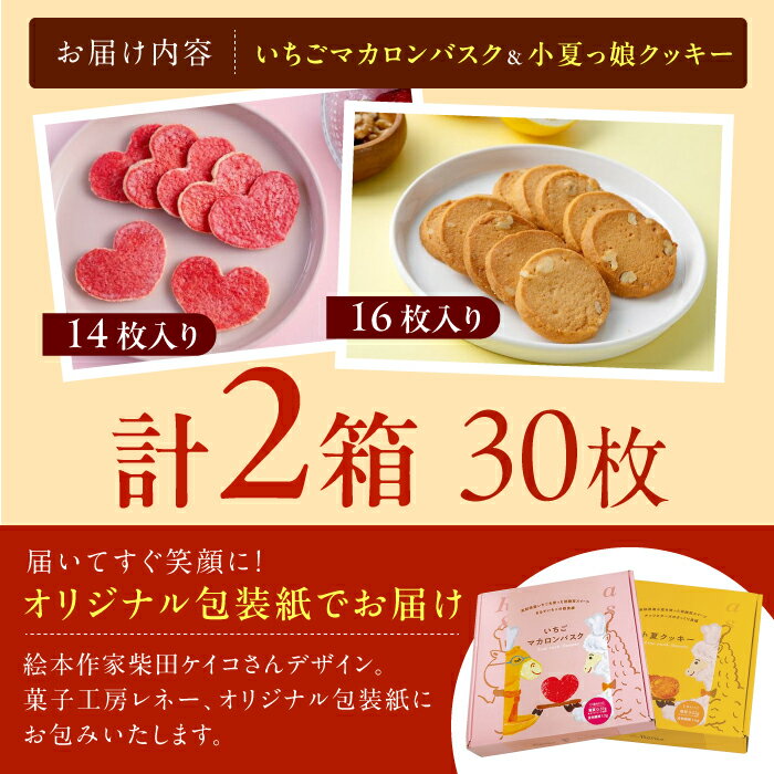 - 【ふるさと納税】絵本作家柴田ケイコさんイラスト 美糖質いちごマカロンバスク (14枚入り) 美糖質小夏っ娘クッキー (16枚入り) 各1箱セット【菓子工房レネー】[ATDE002]