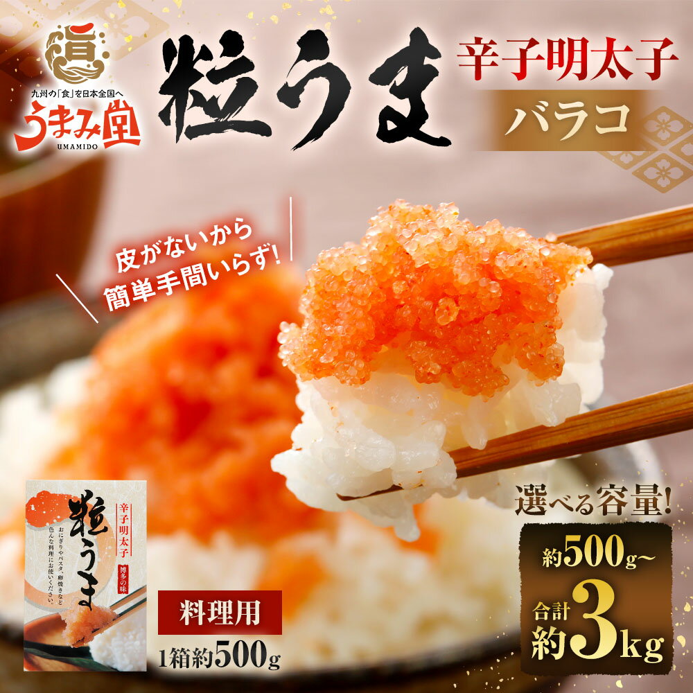 【ふるさと納税】<選べる内容量>うまみ堂 粒うま 料理用 辛子明太子 バラコ 500g(1箱) / 計1kg(2箱) / 計2kg(4箱) / 計3kg(6箱) めんたいこ すけとうだら スケトウダラ 魚卵 魚介類 水産物 皮なし 料理 トッピング アレンジ 冷凍 福岡県 太宰府市 送料無料
