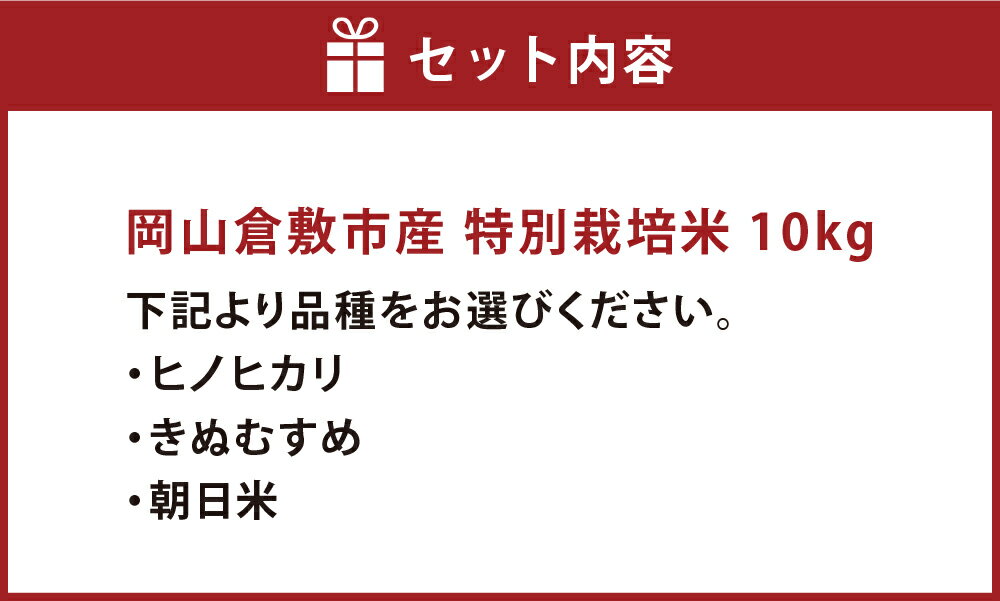 - 【ふるさと納税】【令和7年産】岡山倉敷市産 特別栽培米 <選べる品種>ヒノヒカリ / きぬむすめ / 朝日米 10kg お米 ひのひかり 岡山県 倉敷市 送料無料