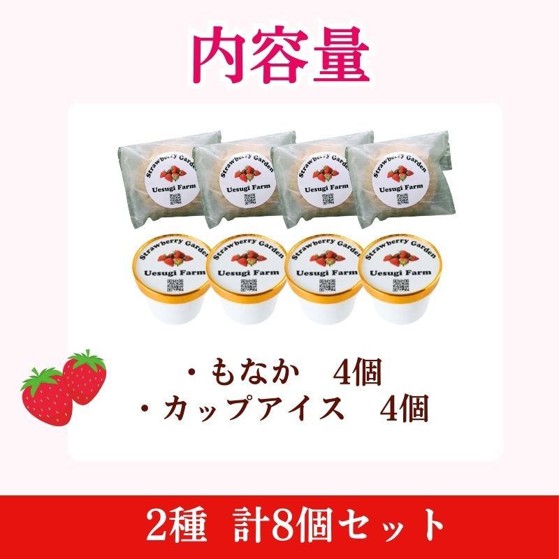 【ふるさと納税】 いちごのアイスセット 2種 計8個 もなか カップアイス いちご 苺 イチゴ いちごアイスクリーム アイス アイスクリーム カップアイス モナカアイス もなか 最中 モナカ 冷たい ひんやり セット 人気 おすすめ ふるさと納税 京都 八幡 八幡市 上杉農園