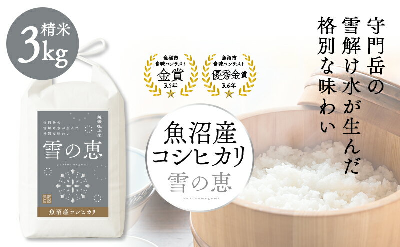 【ふるさと納税】令和7年産 魚沼産コシヒカリ雪の恵(精米)3kg 魚沼市 米 こめ コメ お取り寄せ お届け:2025年10月6日から順次配送