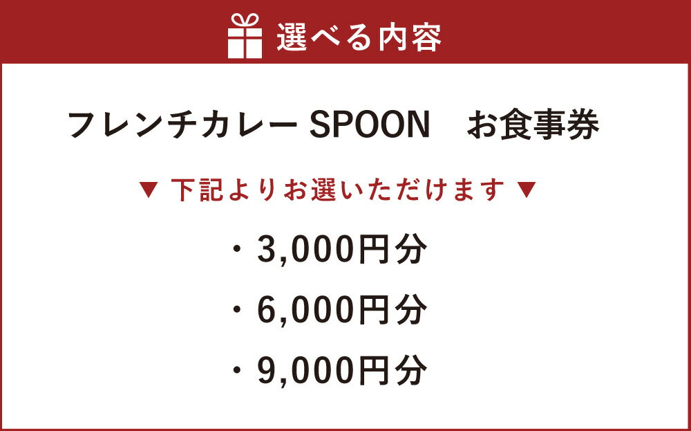 - 【ふるさと納税】<選べる金額> フレンチカレー SPOON お食事券 【 3000円分 / 6000円分 / 9000円分 】 オリジナルカレー カレー 熟成 ヘルシー コク ルー 13穀米 フォンドヴォー 東京都 杉並区 送料無料