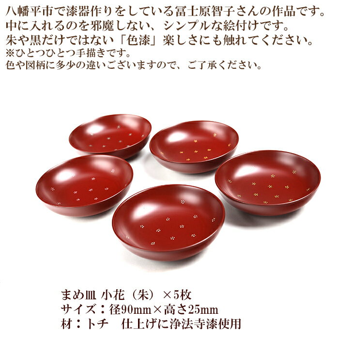- 【ふるさと納税】 漆器 まめ皿 小花 5枚セット 朱 / 豆皿 食器 和食器 漆器 漆塗り 漆塗 小皿 皿 お皿 器 おしゃれ 花柄 小花柄 工芸品 伝統工芸 シンプル かわいい カワイイ 可愛い お洒落 オシャレ 大人 伝統工芸品 王芸 おすすめ 岩手県 八幡平市 送料無料 冨士原智子