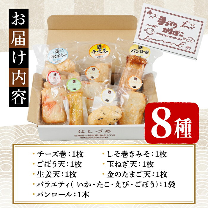 - 【ふるさと納税】揚げかまセット(8種) かまぼこ 蒲鉾 しそ巻きみそ 玉ねぎ 生姜天 たまご天 えび 海老 かに ごぼう 蟹 チーズ 揚げかま おかず おつまみ セット 冷蔵 【橋爪食品】