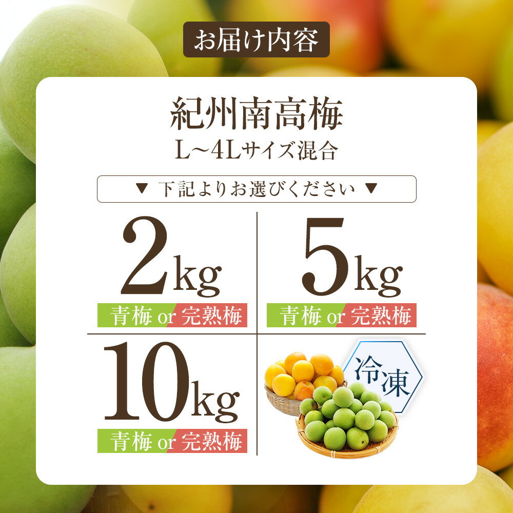 - 【ふるさと納税】冷凍 紀州南高梅 青梅 or 完熟梅 約2kg~10kg L~4Lサイズ混合 ご家庭用 | 南高梅 冷凍梅 梅ジュース 送料無料 和歌山産 完熟 紀州梅 和歌山 梅酒 梅酒用 国産 梅の実 うめ シロップ