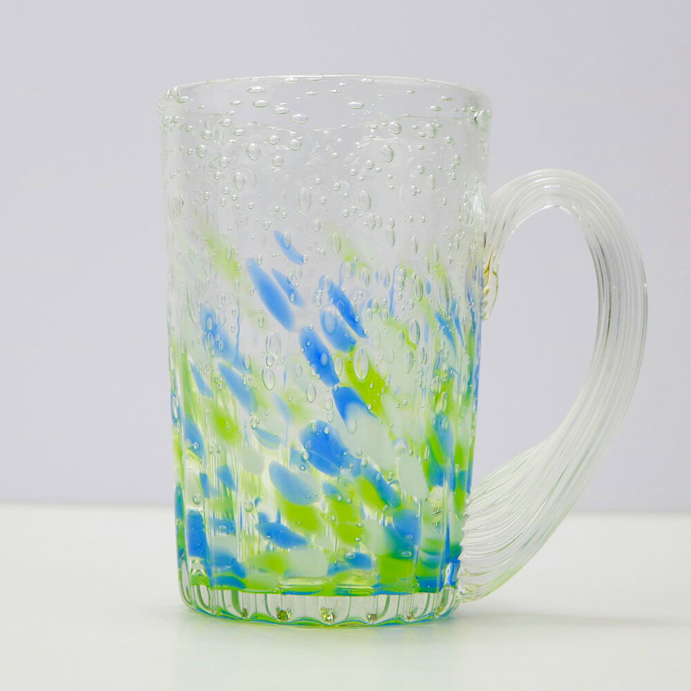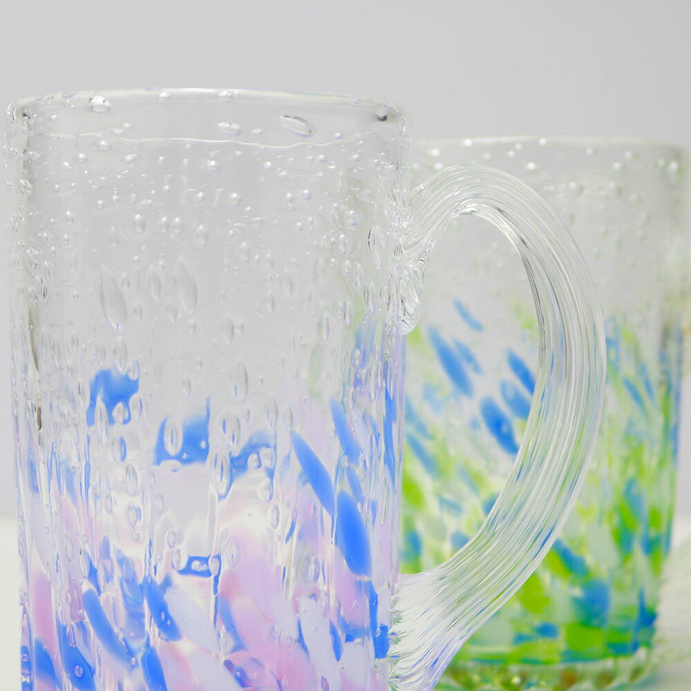 【ふるさと納税】現代の名工「池宮城 善郎」作 気泡の海ラインジョッキ(青緑・青ピンク)2個ペア