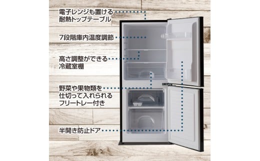 2ドア冷凍冷蔵庫 106L (冷蔵室73L/冷凍室33L) YFR-D111(B)【 冷凍庫 冷蔵庫 2ドア 耐熱トップテーブル フリートレー 家電 キッチン 新生活】