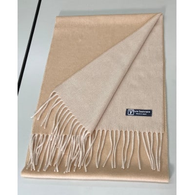 リバーシブル風 カシミヤ100% マフラー(ライトキャメル ×バニラ)【1690442】
