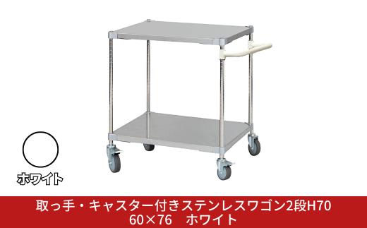取っ手・キャスター付きステンレスワゴン2段H70 60×76 ホワイト PROFACE プロフェイス 冷蔵 冷凍 クリーン 組立式 燕三条製 【284S004】