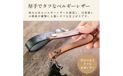 - 〈本革〉ベルギーレザー ループキー ブラック (無料名入れ 刻印) キーケース 鍵 ルガトショルダー ギフト 刻印無料 名入れ無料