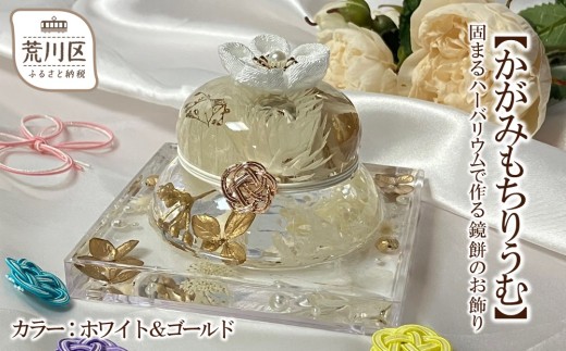 - 【かがみもちりうむ】固まるハーバリウムで作る鏡餅のお飾り(カラー:ホワイト&ゴールド)【071-005-3】
