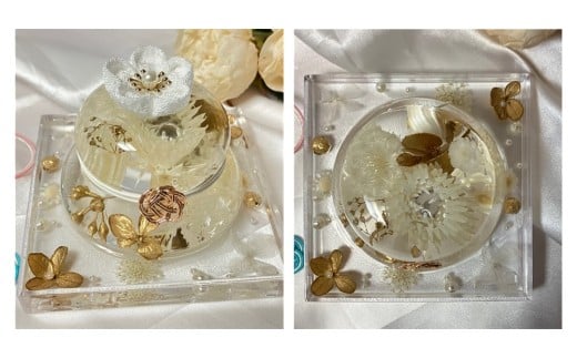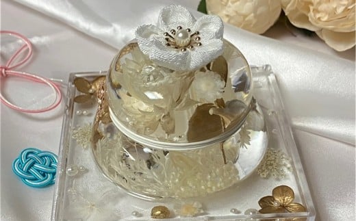 【かがみもちりうむ】固まるハーバリウムで作る鏡餅のお飾り(カラー:ホワイト&ゴールド)【071-005-3】