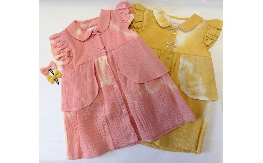 - アトリエ装ウ からむし草木染 ベビーペプラムワンピース ヘアピンセット(茜染め)[ZF23401]
