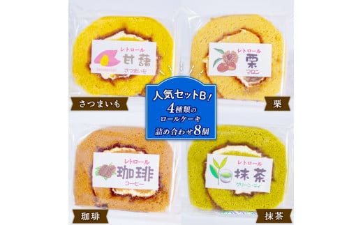 レトロール 人気セットB / 〈 スイーツ 〉ロールケーキ 詰め合わせ 8個 4種 人気 セット フルーツ クリーム ケーキ 洋菓子 お菓子 デザート チョコ 抹茶 ギフト プレゼント 贈答用 食べ比べ しっとり 伊勢 志摩 5000 5000円 五千円