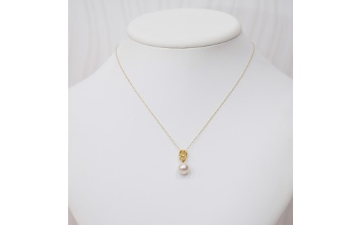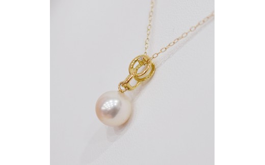 S101-487_あこや真珠 天草 ネックレス ペンダント ダイヤモンド 0.01ct 8mm - 8.5mm ホワイトピンク 真珠 K18 クロス K18YG