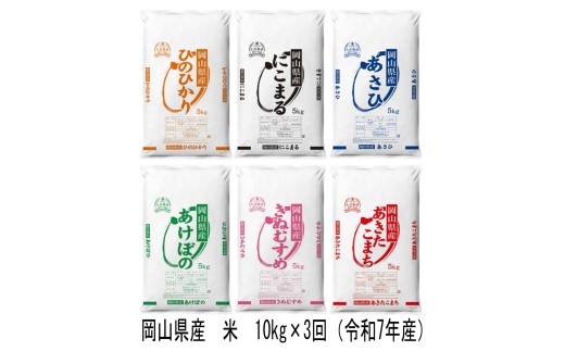 - Gr-1 【定期便】岡山県産 米 ヒノヒカリ・にこまる・朝日・アケボノ・きぬむすめ・あきたこまち(令和7年産)10kg×3回