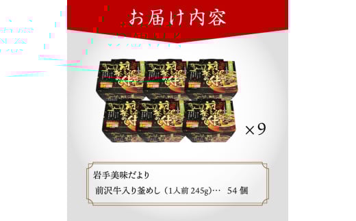 - 岩手美味だより 前沢牛入り釜飯 54個 電子レンジで簡単! 1人前245g 釜めし 前沢牛 奥州市産 ひとめぼれ α米 惣菜 名物 加工食品 レトルト食品 ブランド牛 国産牛 牛肉 ビーフ 肉 [R0007]