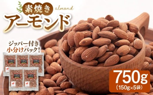 無塩 素焼きアーモンド 800g [160g×5袋] ▼ アーモンド 植物油不使用 大容量 ミネラル 食物繊維 お菓子づくり 美容 健康 低糖質 高タンパク 非常食 小袋 小分け 個包装 桂川町/株式会社福六[ADAM006]