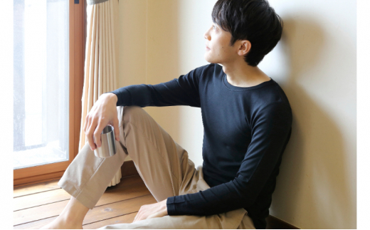 - 0097《絹生活研究所》インナー/メンズ/長袖/ブラック/Lサイズ