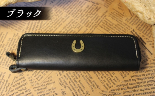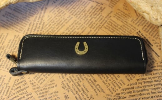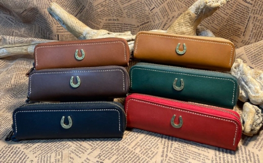 蹄鉄付きラウンドファスナーペンケース (キャメル) 栗東市 / 株式会社ブルズエフ [BIAU501]