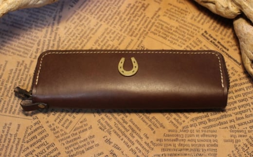- 蹄鉄付きラウンドファスナーペンケース (キャメル) 栗東市 / 株式会社ブルズエフ [BIAU501]