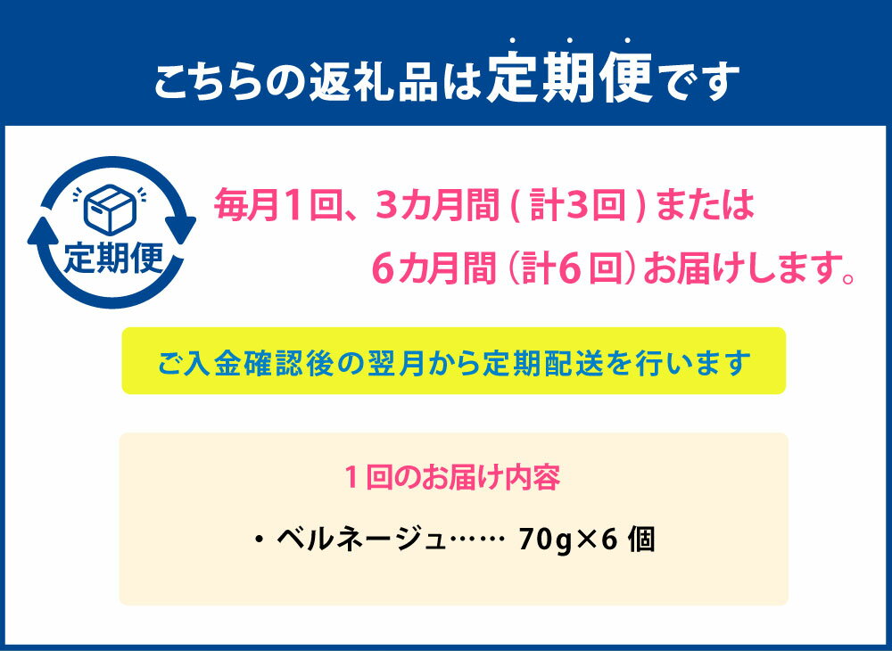 【ふるさと納税】<選べる定期便>ベルネージュ 70g×6個セット 計18個 36個 1ヶ月毎 3回 6回 チーズ 生クリーム入り 白カビタイプ おつまみ お酒のお供 おやつ 乳製品 冷蔵 国産 北海道 中札内村 送料無料 [027-0115]