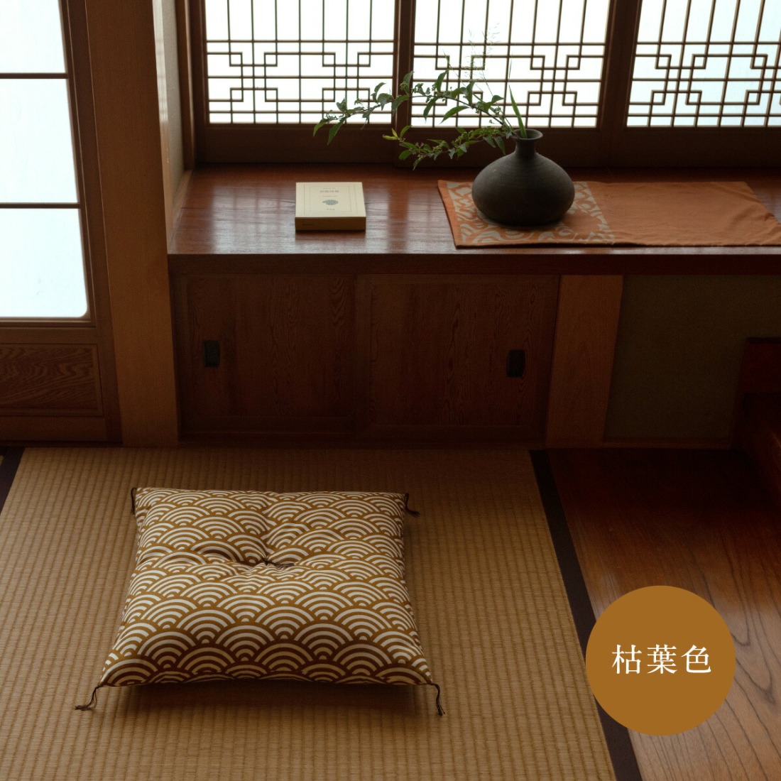 - 座布団 和柄の綿ざぶとん 42cm×43cm 国産 綿100% お祝い 贈答 プレゼント 枯葉色《45日以内に出荷予定(土日祝除く)》---A-230a_kareha---