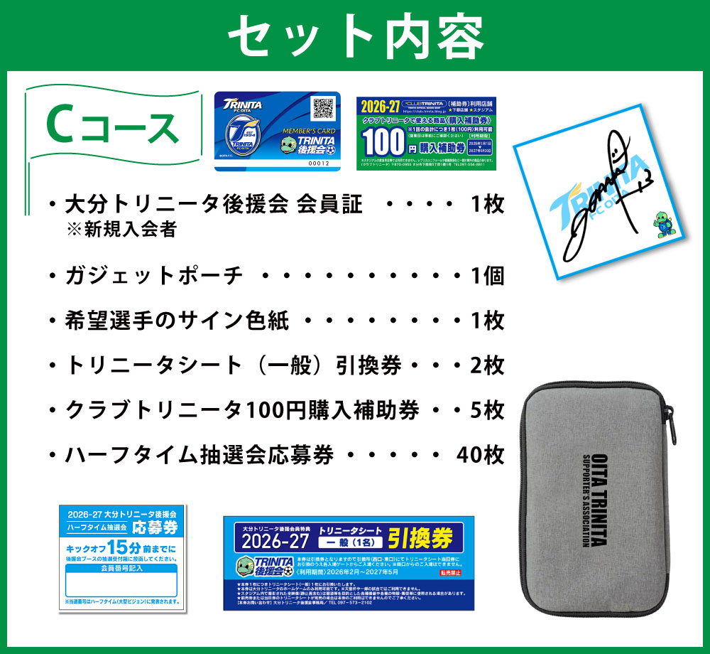 - 【ふるさと納税】2026/27年 大分トリニータ 後援会 Cコース 会員証 希望選手のサイン色紙 1枚 サイン チケット 携帯ショルダーバッグ 引換券 補助券 抽選応募券 優待特典 サッカー 応援 大分県 送料無料