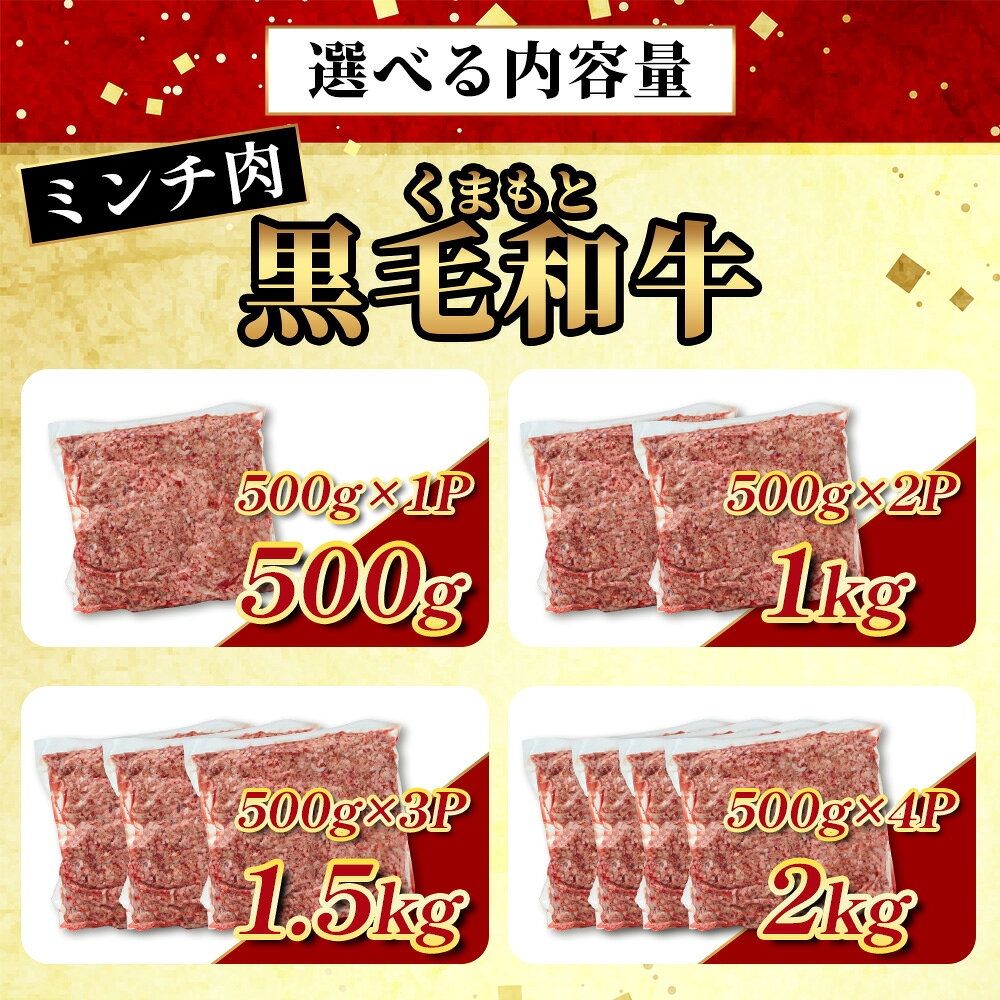 - 【ふるさと納税】くまもと 黒毛和牛 ミンチ 500g / 1kg(500g×2) / 1.5kg(500g×3) / 2kg(500g×4) 内容量選べる ふるさと納税 5000円 本場 熊本県 黒毛 和牛 国産 牛肉 ミンチ肉 挽肉 ひき肉挽き肉 ブランド 牛 肉 上質 ハンバーグ コロッケ 餃子 送料無料