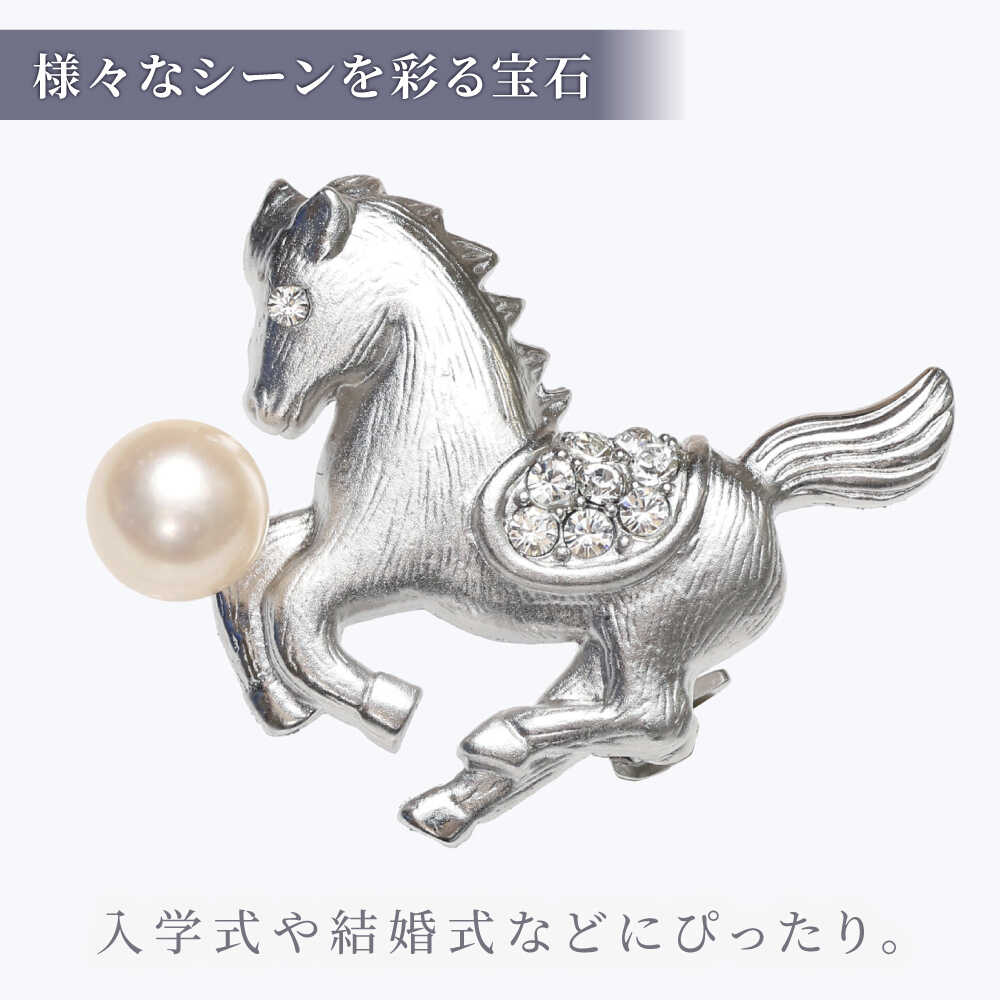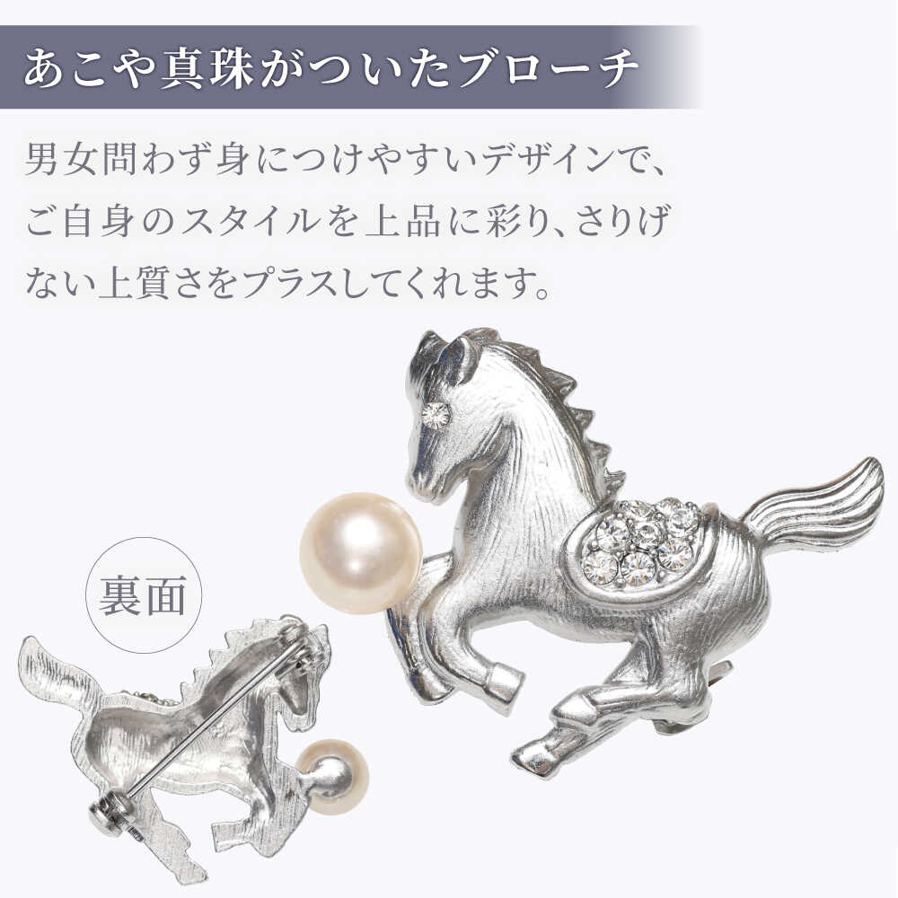 【ふるさと納税】あこや真珠 (7mm珠) ブローチ 馬 D 【園田真珠】 真珠 パール あこや お祝い ギフト 冠婚葬祭[RBB074]
