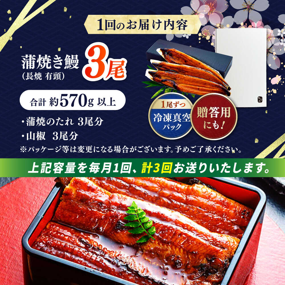 【ふるさと納税】【3回定期便】 極上国産うなぎ四万十桜 蒲焼き3尾 たっぷり大サイズ / 国産 高知 四万十 うなぎ ウナギ 鰻 蒲焼き うな重 惣菜 贅沢 【有限会社もりた】[ATHE006]