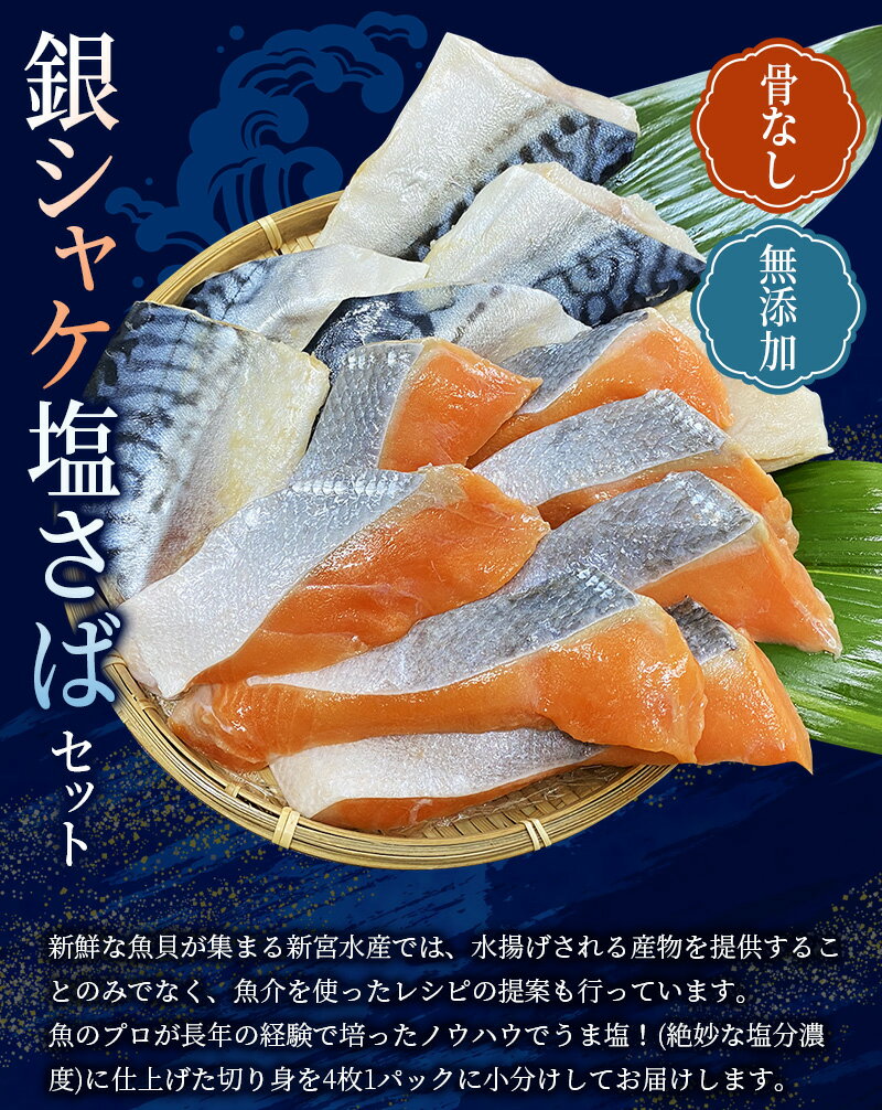 骨無し 無添加 銀シャケ切身 塩さば セット 16枚