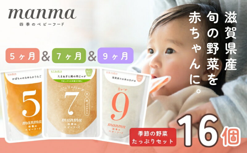 - 【ふるさと納税】manma 四季のベビーフード【5か月・7か月・9か月】16個セット 国産 保存料不使用 おかゆ 離乳食 レトルト パウチ 赤ちゃん 滋賀県産 ベビー用 ごはん 時短 便利 育児 子育て 白がゆ おじや おかず