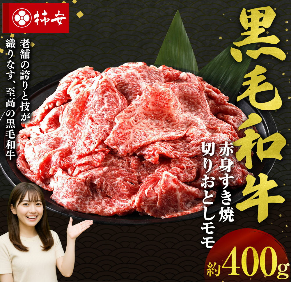 - 【ふるさと納税】【指定日必須】 柿安本店 黒毛和牛 赤身 すき焼 切りおとし モモ 約400g 三重県 桑名市 送料無料