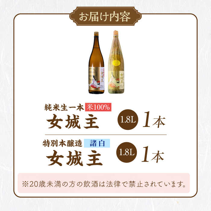 - 【ふるさと納税】晩酌セット(特別本醸造、純米(米100%))/ 日本酒 女城主 晩酌セット 地酒 清酒 純米酒 特別本醸造 本醸造酒 純米 純米酒 米百パーセント 飲み比べ 家飲み 飲みきり 飲み比べ セット 日本酒 和酒 お酒 おすすめ 岐阜県 / 恵那市 / 岩村醸造 [AUAK040]