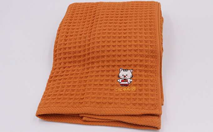 【ふるさと納税】こにゃんワッフル地バスタオル【オレンジ色】 日用品
