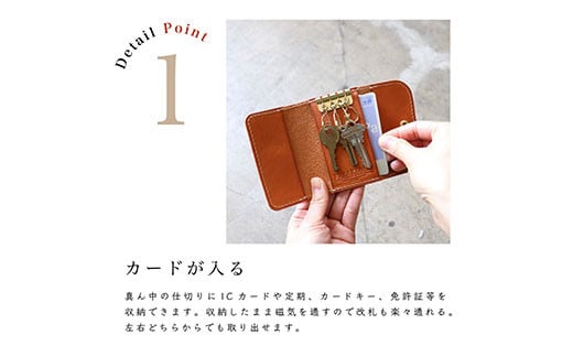 - カードが入る 三つ折りキーケース 栃木レザー 本革 革 ふるさと納税 三つ折り キーケース カード キーフック 定期 免許証 京都府 長岡京市