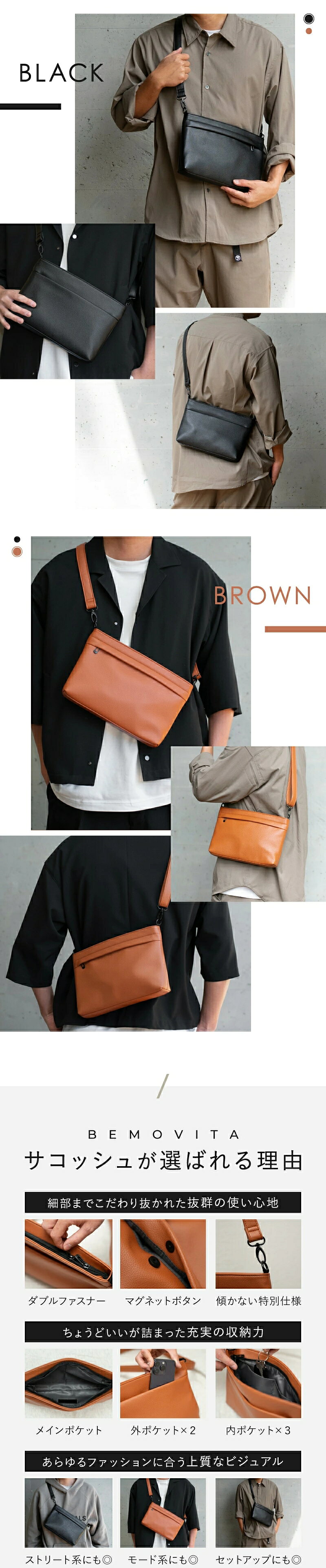 【ふるさと納税】[BEMOVITA]メンズ レザーライク サコッシュ 選べるカラー ブラック or ブラウン | ショルダーバッグ 軽量 斜めがけ ボディバッグ コンパクト 合成皮革 撥水 ミニバッグ ビジネス ギフト プレゼント 小さめ バッグ 旅行 サブバッグ