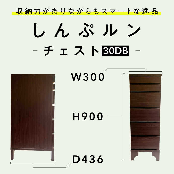 【ふるさと納税】家具 しんぷルン・チェスト30DB 収納 家具 組立不要 収納家具 引き出し 棚 キャビネット タンス 箪笥 木製 A4サイズ 書類 整理整頓 片付け リビング 寝室 子供部屋 オフィス シンプル モダン コンパクト スリム 省スペース 人気 岐阜市 / CAPIC[ANFK001]