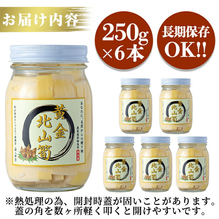 【ふるさと納税】《先行予約受付中!2026年6月以降順次発送予定》数量限定!黄金北山筍 (小)250g×6本合計約1.5kg!国産 九州産 姶良市産 たけのこ タケノコ 水煮 カット 野菜 煮物 小分け 瓶 長持ち 長期保存【北山校区コミュニティ協議会】