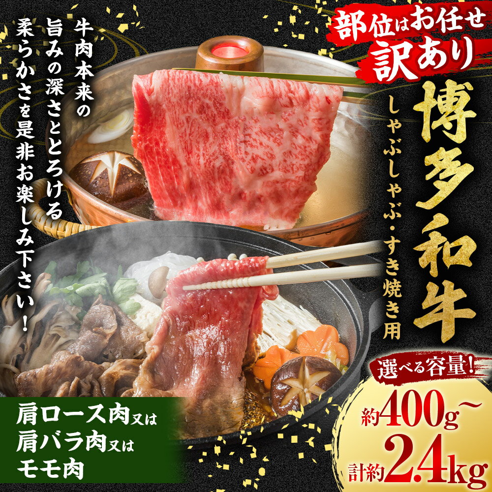 - 【ふるさと納税】<選べる容量>【訳あり / 部位はお任せ】博多和牛 しゃぶしゃぶ すき焼き用 (肩ロース肉 ・ 肩バラ肉 ・ モモ肉) (400g / 800g / 1200g / 1600g / 2000g / 2400g) 肉 牛肉 和牛 牛 黒毛和牛 訳アリ 訳あり 送料無料 福岡県 うきは市 冷凍