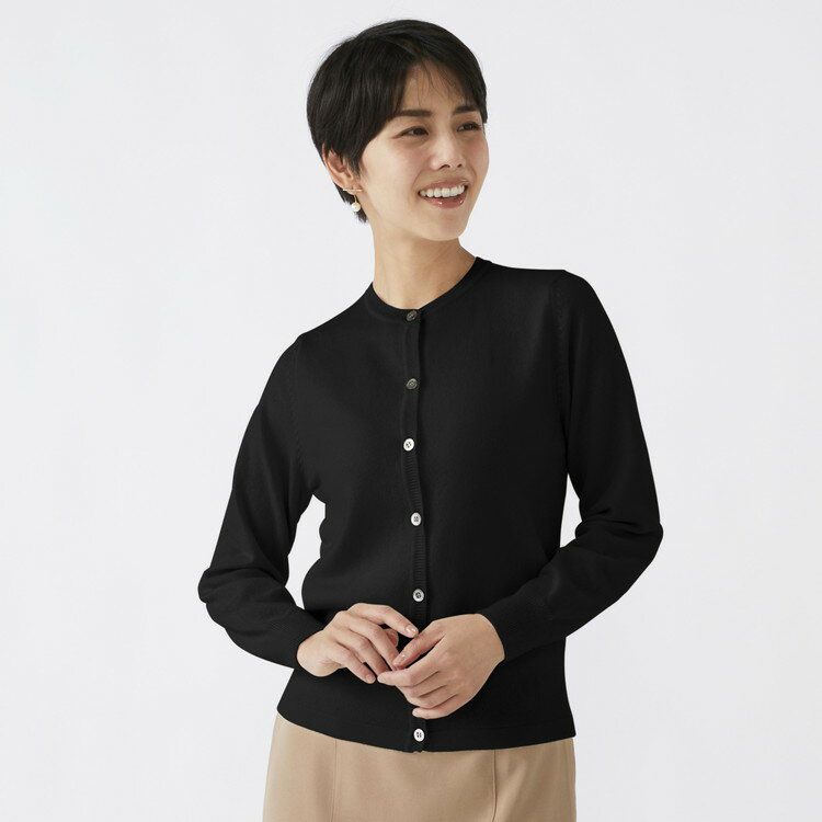 - 【ふるさと納税】【選べるサイズ】日本製 カシミヤ100% レディース クルーカーディガン ブラック